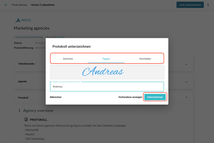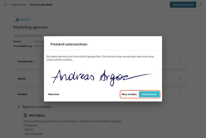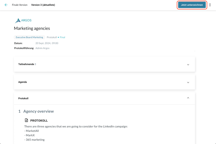Das Protokoll auf Anfrage vom Board-Organisator signieren