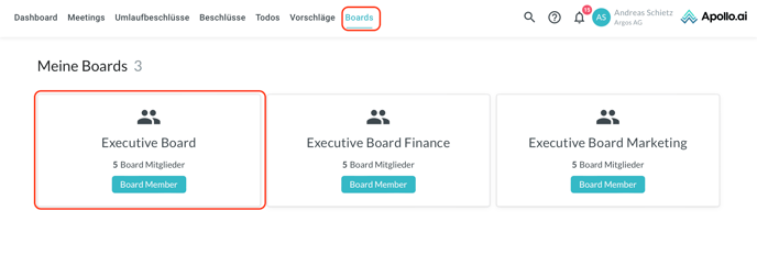 Öffnen Sie das Tab "Boards", dann wählen Sie ein Board aus der Liste aus: