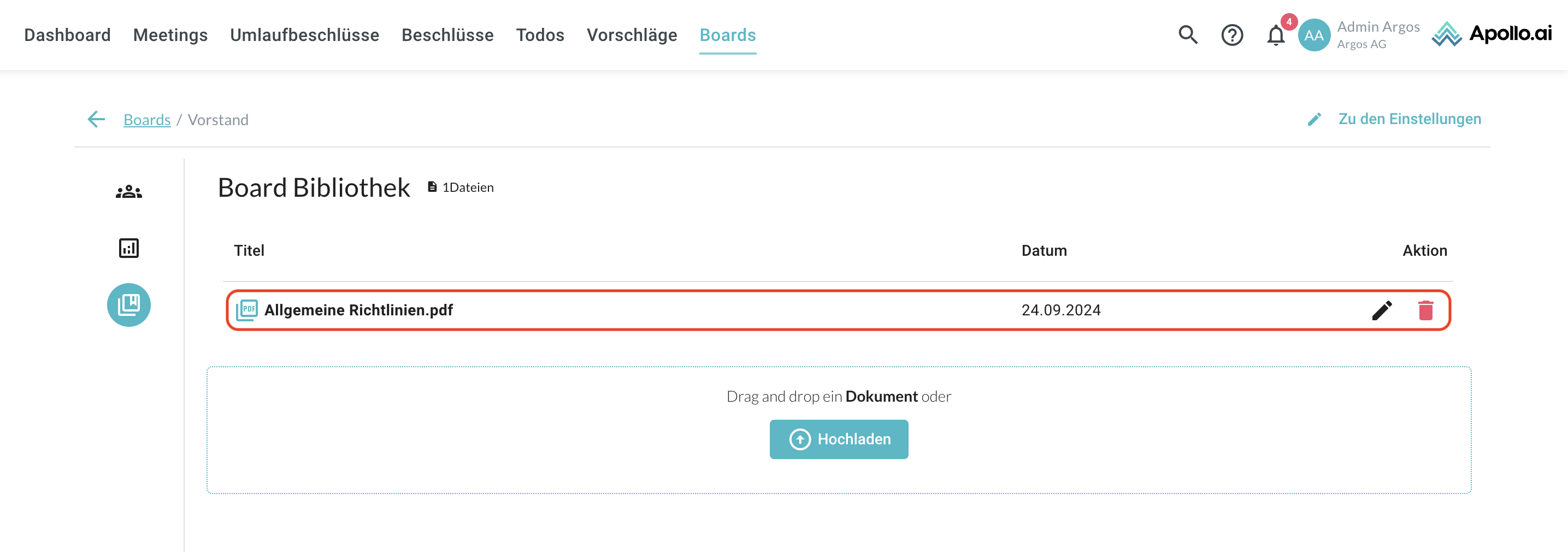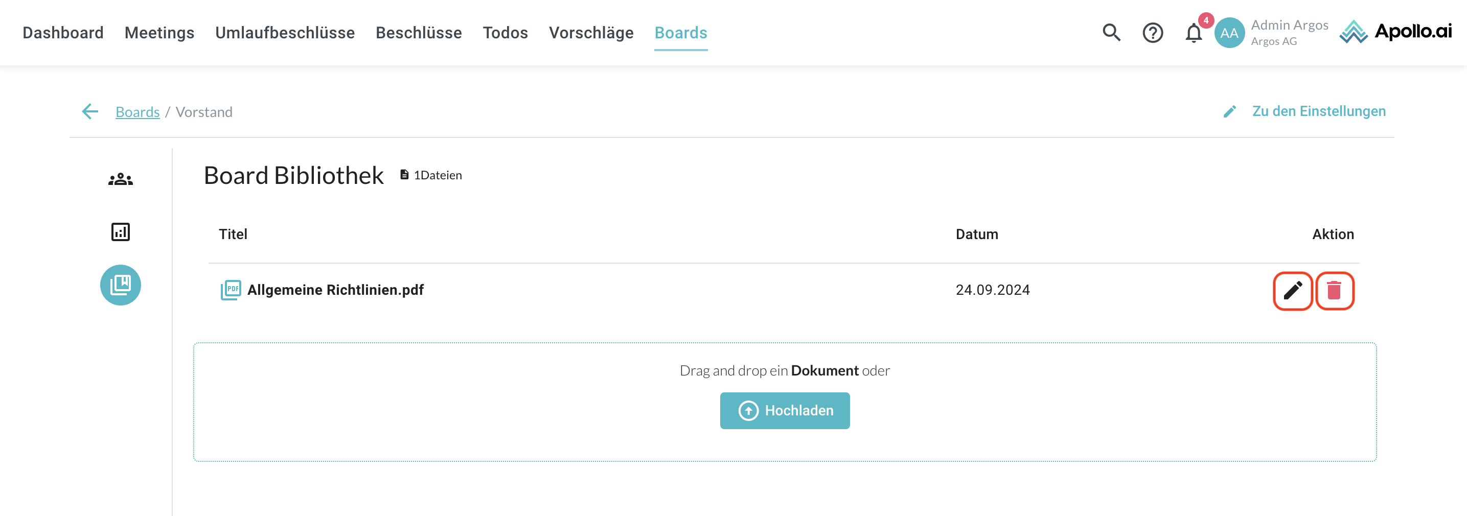 Dateien zur Board Bibliothek hinzufügen, umbenennen und löschen