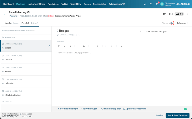 Sie können nun mit der Finalisierung des Transkripts fortfahren.
