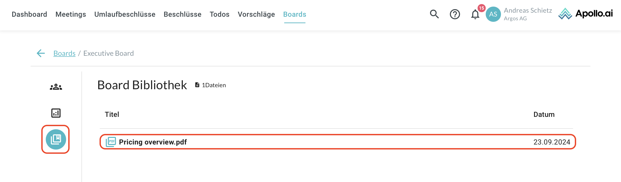 Navigieren Sie zur Board Bibliothek über die linke Spalte und klicken Sie auf eine Datei, um diese in Apollo.ai zu öffnen: