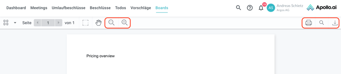 Im oberen Bereich finden Sie Zoom-, Druck-, Such- und Download-Optionen: