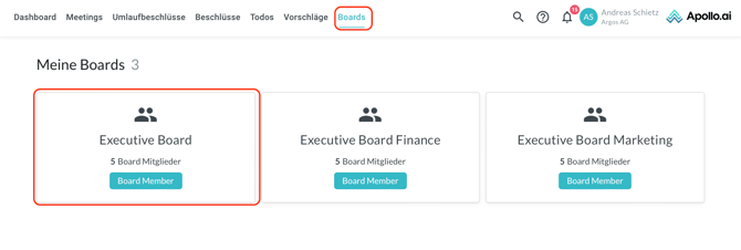 Öffnen Sie das Tab "Boards" und wählen Sie ein Board aus der Liste aus: