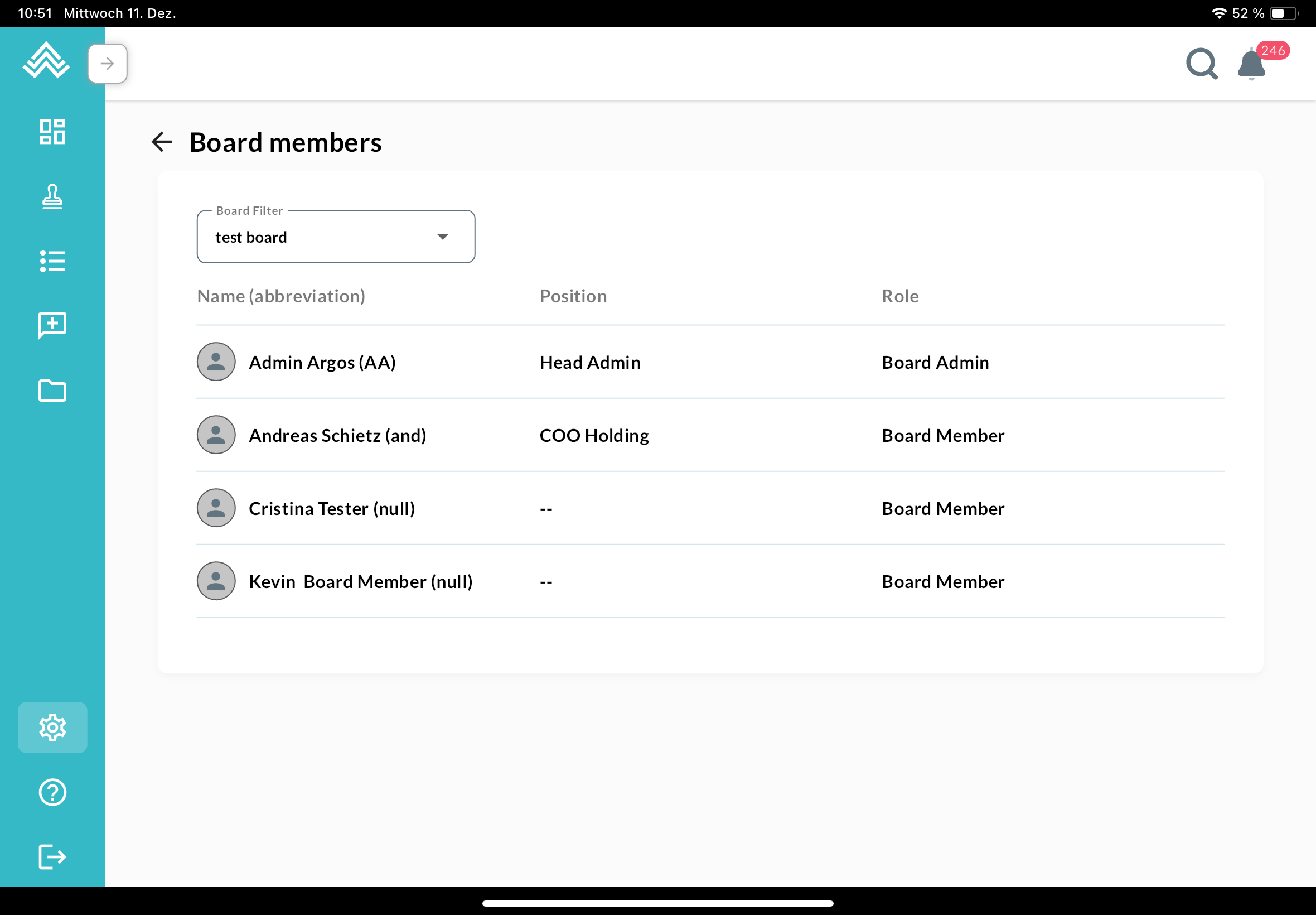 Unter "Board-Mitglieder" können Sie sehen, wer noch Teil Ihres Boards ist und mit welcher Rolle: