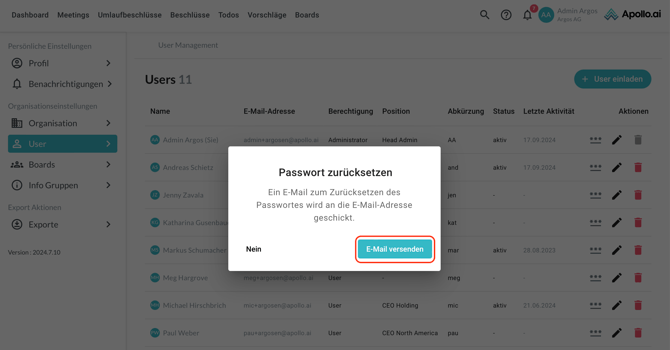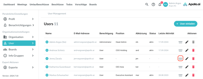 Um das Passwort eines bestehenden Users zurückzusetzen, klicken Sie rechts auf das Symbol mit den drei Punkten: