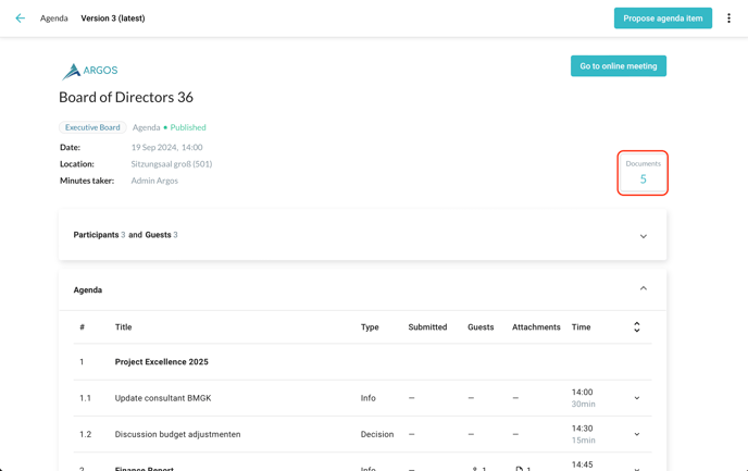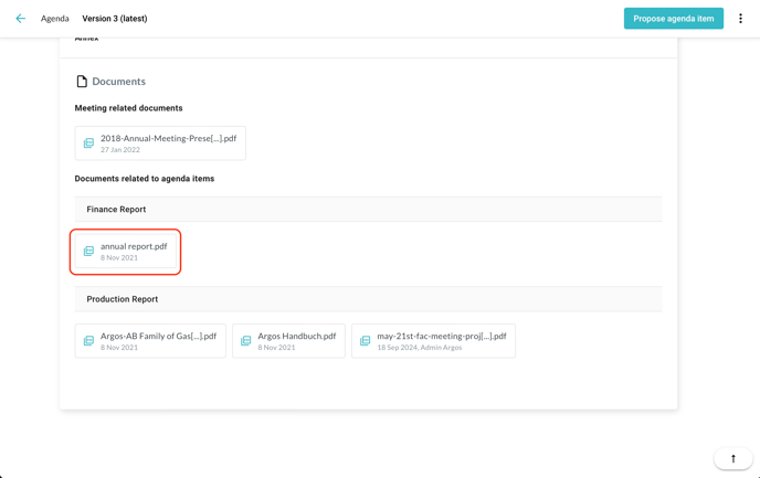 You can add your own notes to any document attached to a meeting, anytime. Such notes are only visible to you.