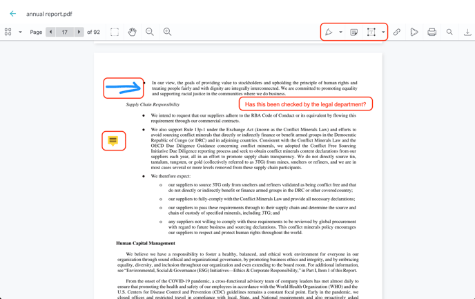 Use the tools in the top bar to navigate through the document and to draw, type, or add post-it notes: