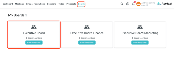 Open the "Boards" tab, then select a board from the list: