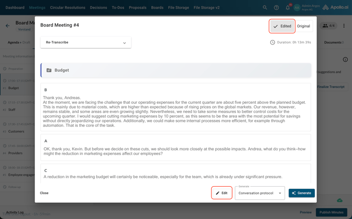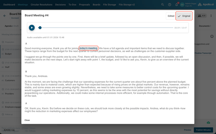 The original transcript is only visible to the Board Organizers. The audio file is automatically deleted after 30 days.
