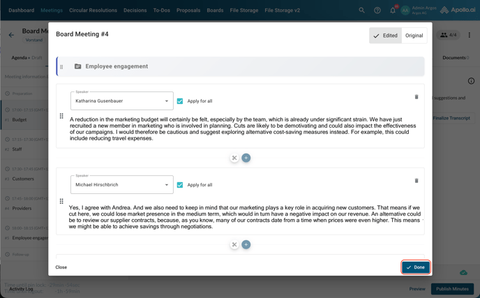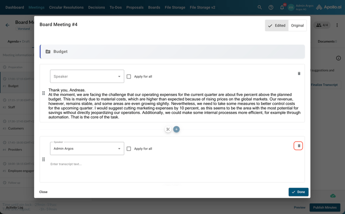 Note: None of these edits influences or changes the original transcript in the tab "Original" in any way. For compliance reasons, the original can never be edited.