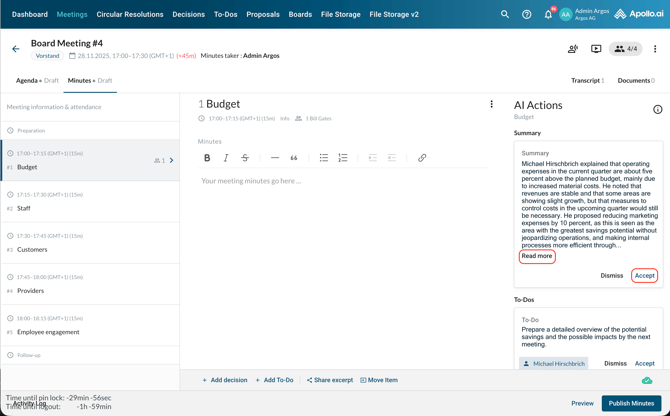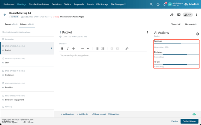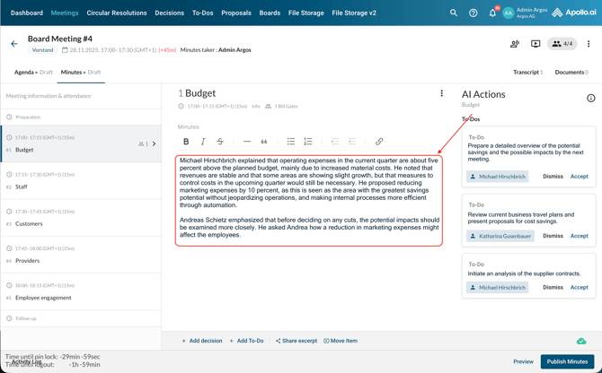 Once done, you are ready to publish the meeting minutes or start the review process.