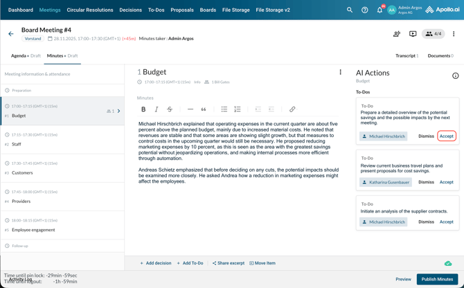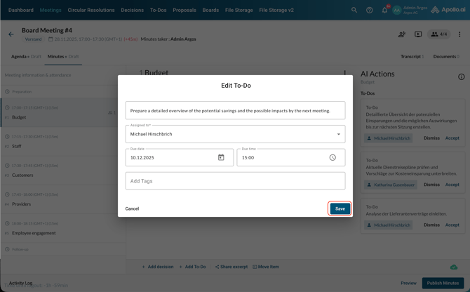 You can add further decisions or to-dos manually as well as edit the accepted suggestions at any time.