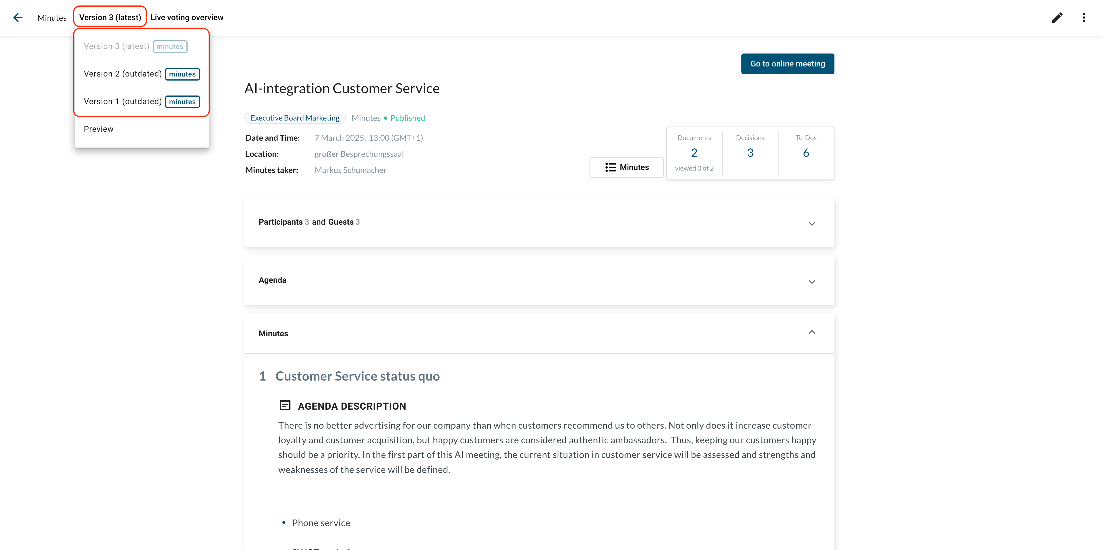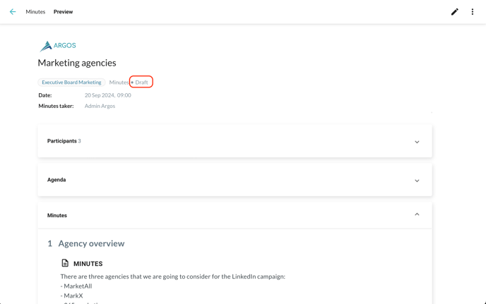 Preview meeting minutes before publishing