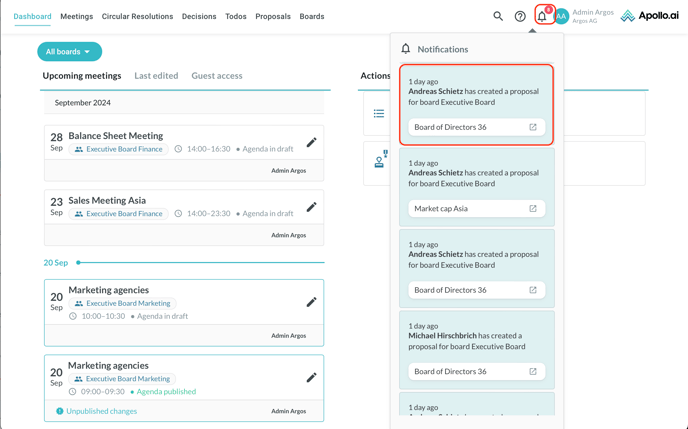 If your board is enabled to submit proposal for any meeting as a default, the Board Members will be able to submit items to any meeting, without any need for you to request suggestions manually for each individual agenda. See more details on how to change the proposal submission settings in this article.
