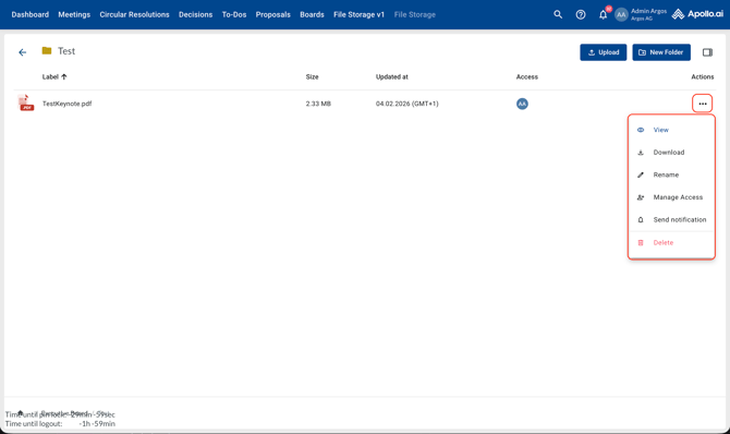 You can access the view, download, access, and notification options clicking on the three dots next to the desired file or folder, as well as the renaming and deletion options: