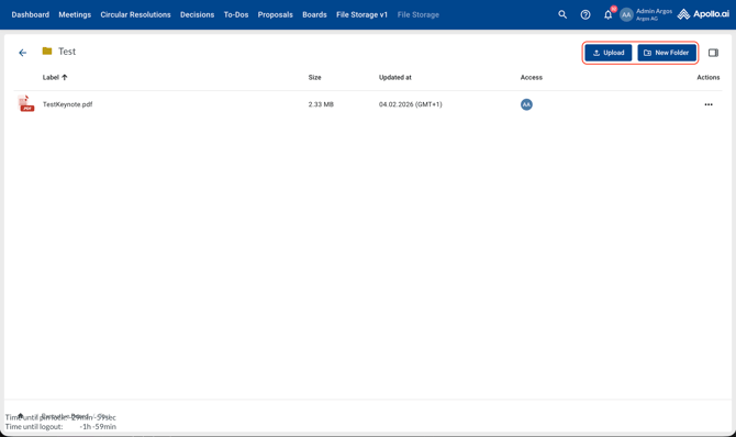 Upload new files or folders by clicking on the corresponding buttons in the top-right corner: