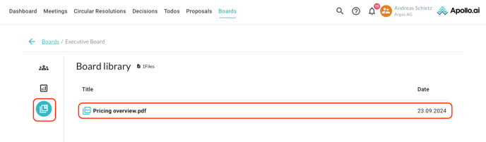 Navigate to the "Board library" section through the left column and click on a file to view it: