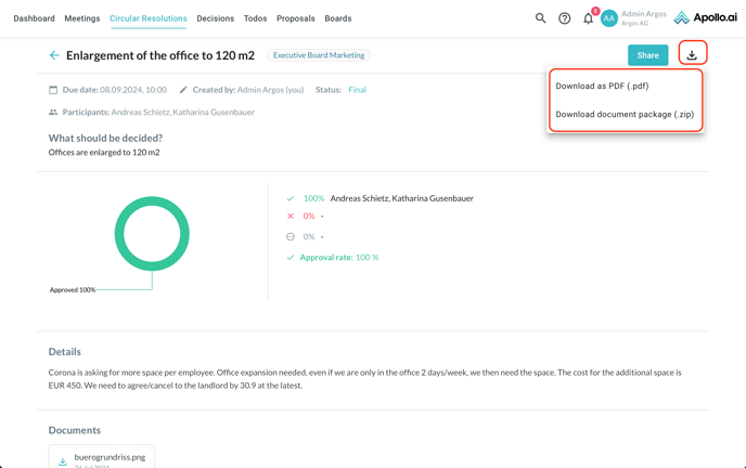 Download meeting minutes and circular resolutions including attachments