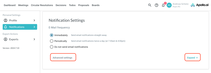 Click on "Advanced settings" or "Expand" to select which type of notifications you would like to receive: