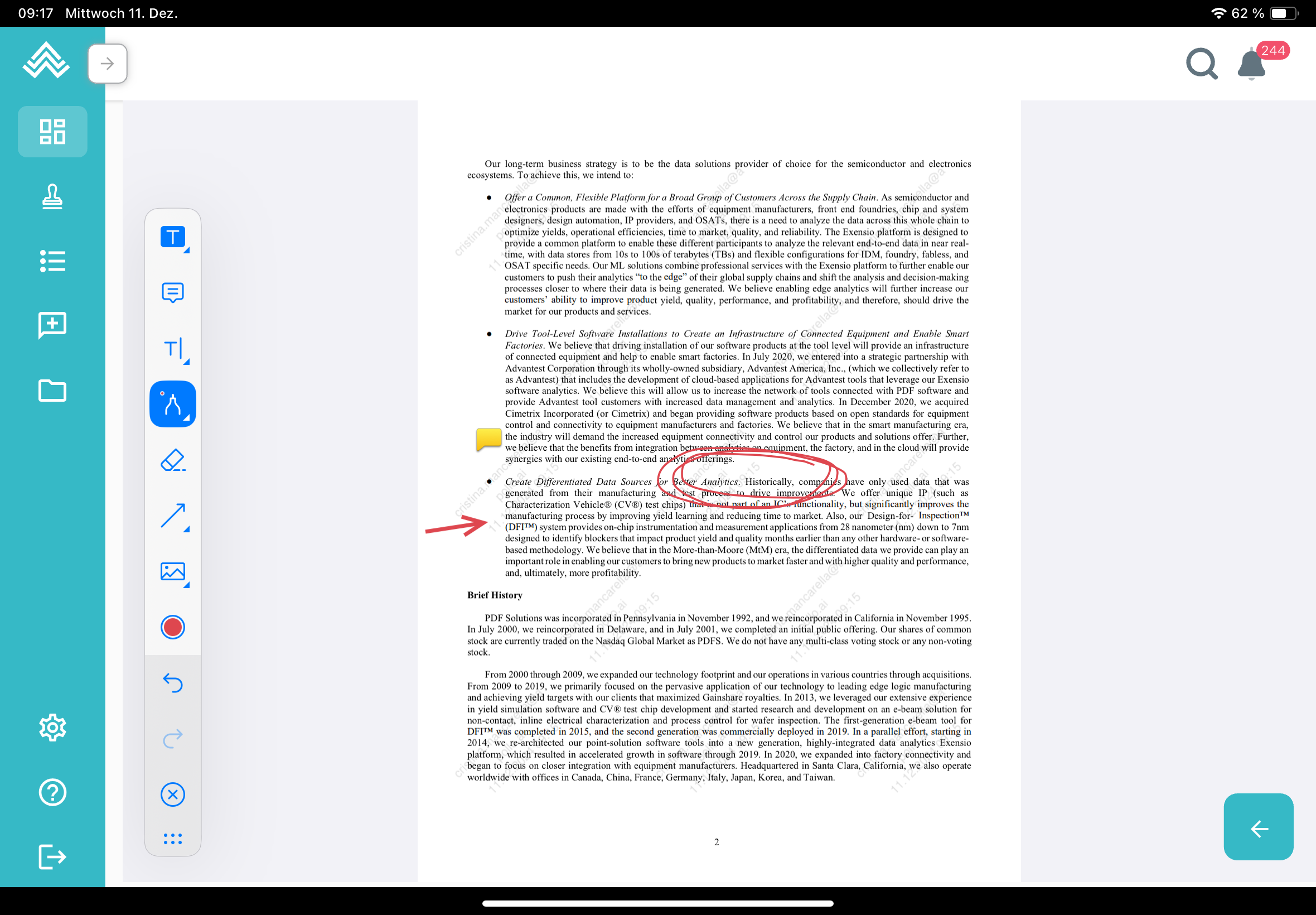 When requested to review the meeting minutes, you are notified and taken to the PDF viewer. Click on the 'Edit' symbol to open the tool sidebar and easily add your comments by using your tablet pen or the keyboard as preferred: