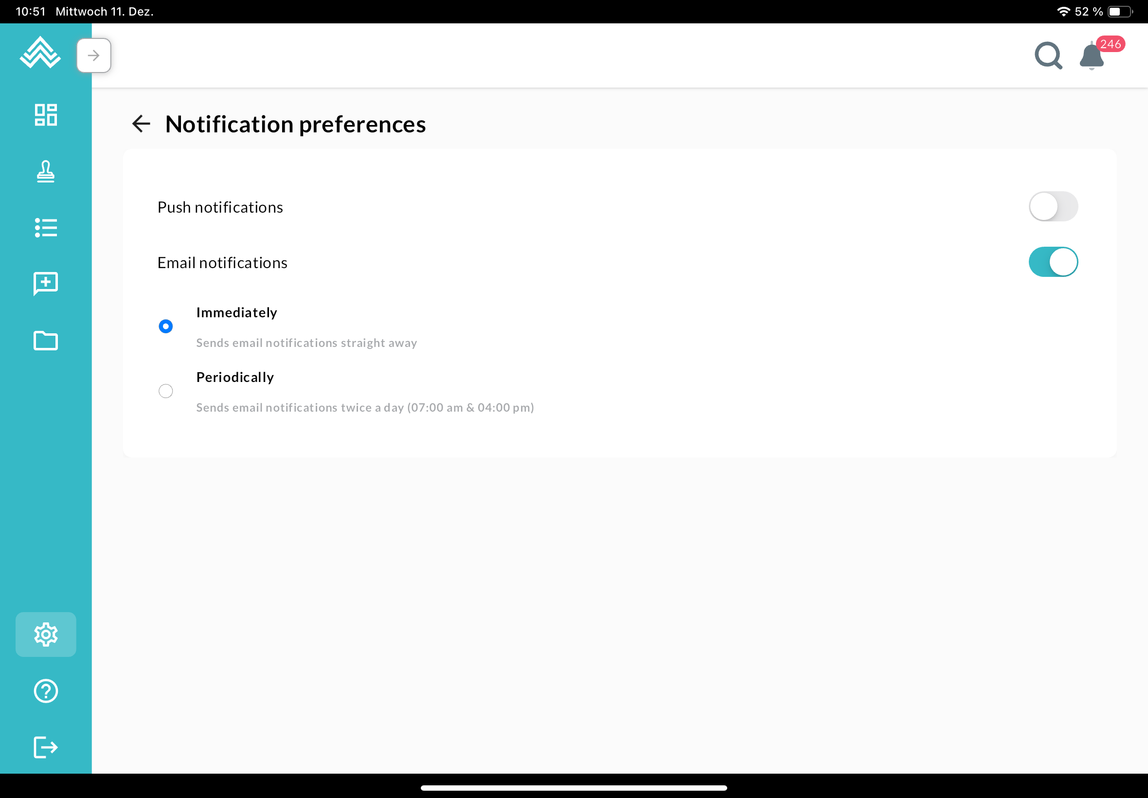 In the notification settings you can change the email frequency and activate/deactivate the push notifications: