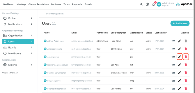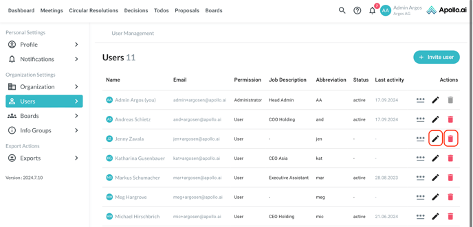 You can edit or delete an existing user by clicking on the respective symbol on the right: