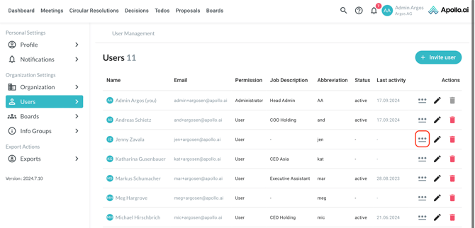 To reset the password for an existing user, click on the symbol with the three dots on the right:
